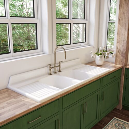 We are building a new home after living in our 1950’s bungalow for 25 years. The best part of my little bungalow was it’s original drain board sink. It wasn’t just the uniqueness of it, but it is functionally the best sink ever. I wanted that in our new home and was thrilled to find it here. It is perfect. This is the best part of our new kitchen.