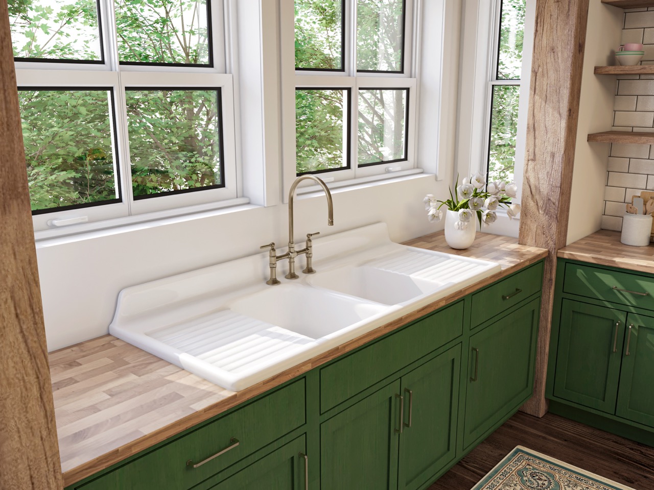 My husband & I renovated our 80+ year old farmhouse kitchen around our NBI double drainboard sink and we couldn’t be happier with the way it turned out. He made a couple of calls to customer service and they were excellent in walking him through the ‘how-to’s’ of installing it. Thank-you NBI!!