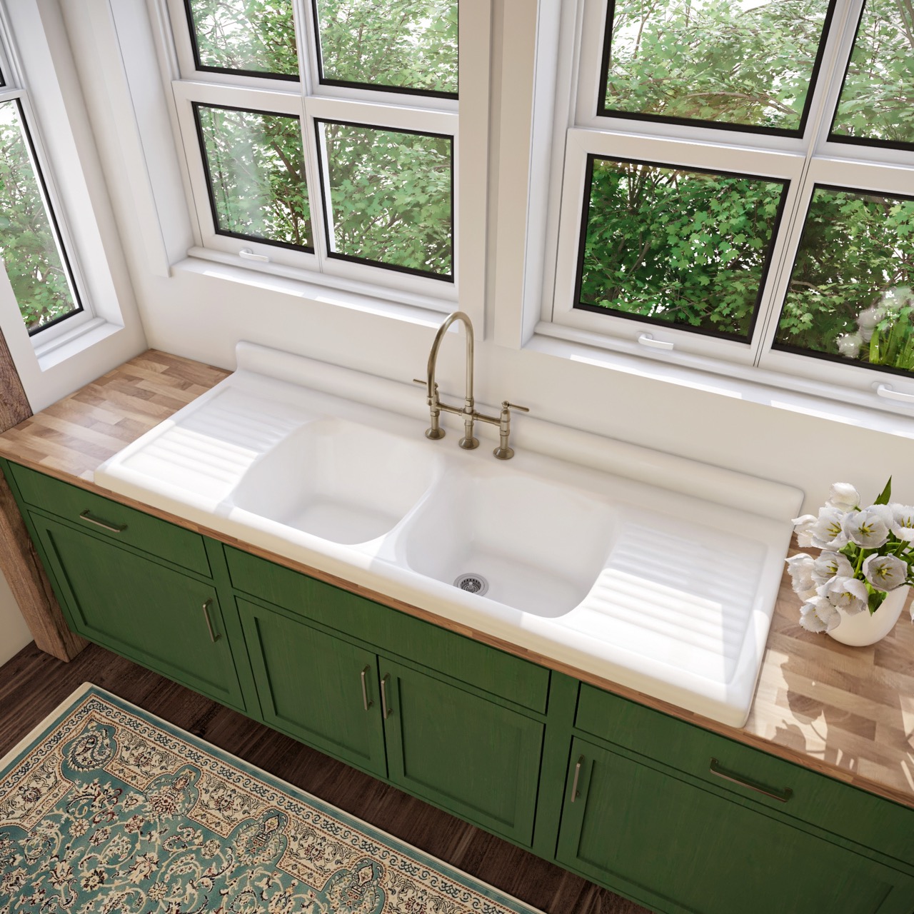I have always wanted a double drainboard sink since I saw one in an old house we visited when I was little. I couldn’t locate an original that was in good shape, and restored original sinks and the shipping were not cost effective. Doing a search, I came across this sink. It’s perfect! It looks good, easily installed and people think it’s an original cast iron when they see it. It is very durable, easily cleans up, and looks great! Highly recommend.