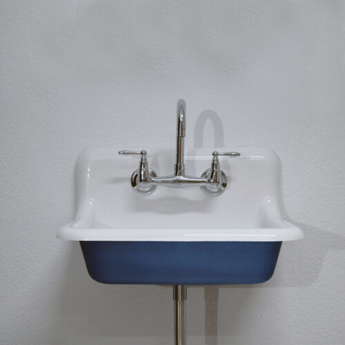 A faithful reproduction of an early-century design, this compact vintage sink is ideal for smaller spaces. Perfect for laundry rooms, bathrooms, and mudrooms, it combines classic style with modern convenience. This wall mount sink includes a mounting kit for easy installation, allowing it to be free-hung for a sleek, space-saving look. The exterior is finished in Sherwin Williams Oceanside, bringing a bold and timeless aesthetic to any space. This listing also includes the faucet and drain, as shown in the imagery.